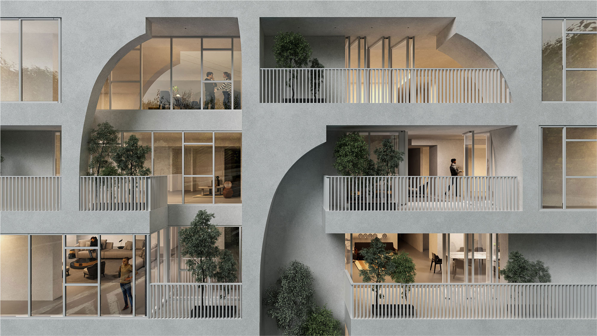 ما بر این باوریم که این نوع فضاهایی که امروزه از خانه های شهر حذف شده اند، میزان رضایت ساکنان را از خانه ی خود کاهش داده و با برگرداندن دوباره این فضاها به کاربران می توان ارتباط آنها با طبیعت و خانه خود را به آسانی تقویت کرد. در واقع فضاهای بینابینی جداره های پروژه را در بر گرفته و از جداره به داخل نفوذ کرده و در نهایت به شکل لایه - لایه کیفیت فضاهای معماری را ارتقا بخشیده است.