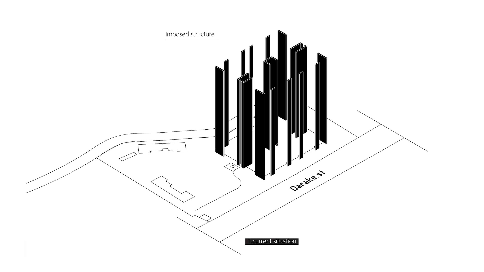 درخواست بازبینی پروژه زمانی مطرح شد که اجرای سقف چهارم هم به پایان رسیده بود. طبق روال معمول پیشبرد این گونه پروژه ها قاعدتا کار ما به بازطراحی نما محدود می شد اما تصمیم تیم طراحی بر این بود که از طراحی نما برای این پروژه فراتر رفته و تغییرات اساسی در معماری و نمای آن اعمال شود. با توجه به محدودیت سیستم سازه ای از پیش ساخته شده در ایجاد وُید، تصمیم گرفته شد تا با تمرکز بر لبه های ساختمان، سلسله مراتبی را از بیرون به درون پروژه تعریف کنیم. اولین قدم در باز طراحی پروژه شفاف کردن جداره های صلب طرح اولیه بود. در قدم بعدی فضاهای مورد نیاز هر واحد در فاصله بین هسته مرکزی و دیوارهای برشی تعبیه شد و فضای پیش آمدگی از دیوار های سازه ای را به عنوان فضای بینابینی پروژه در نظر گرفته شد.